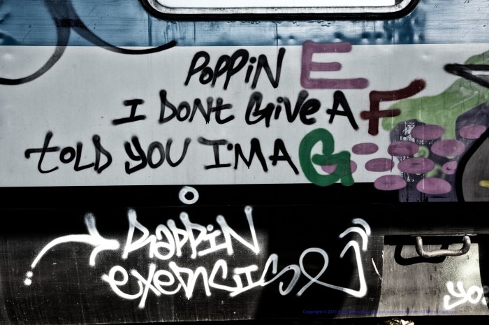 Not just the streets, sometimes it seems that any vertical surface is pressed into service as a canvas to express someone’s ideas.